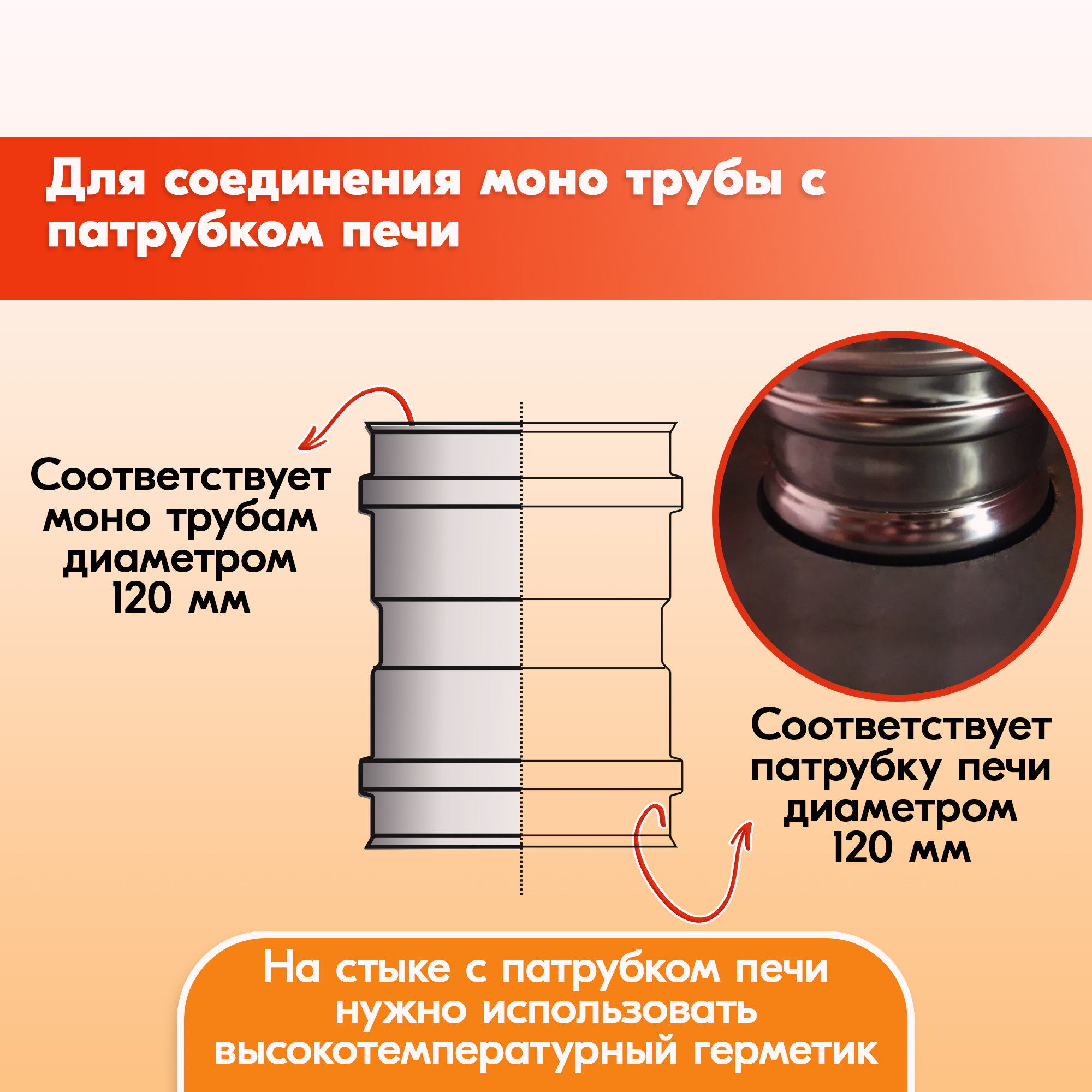 - такой вид адаптера подходит для соединения дымоходной трубы Моно с дымоотводящим патрубком отопительного оборудования;
