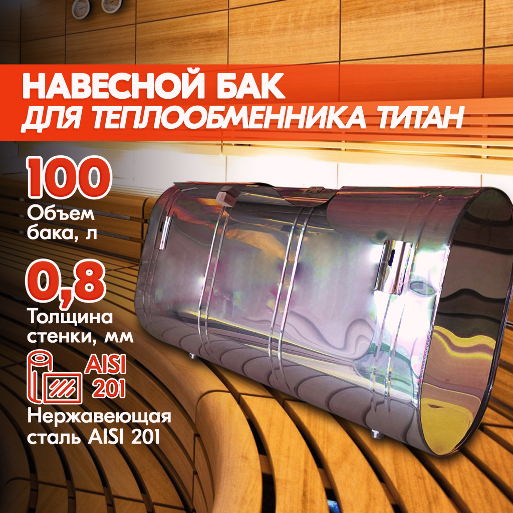 В качестве материала навесного бака для бани используется аустенитная марка стали AISI 201.