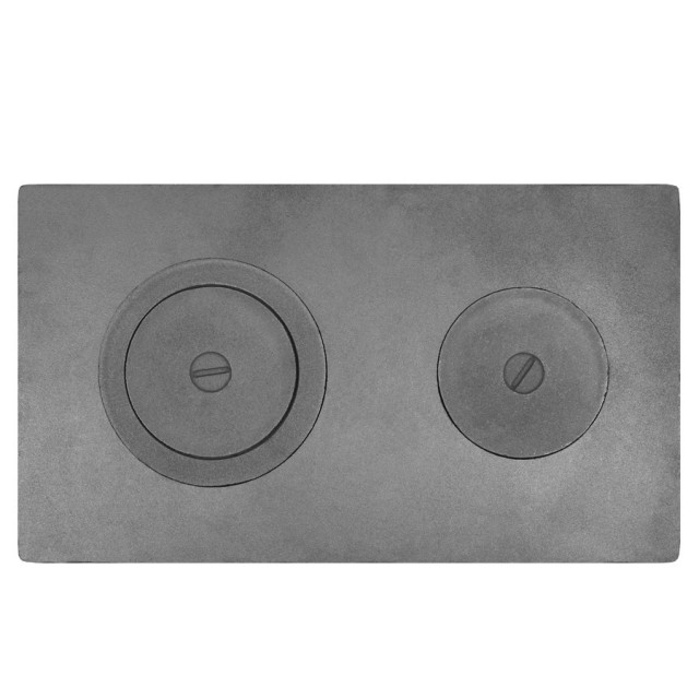 На одной части плиты встроена цельная конфорка К№2А, на второй части - конфорка состоит из двух отдельных чугунных колец К№2А и К№3, что позволяет изменять размер отверстия в плите в зависимости от посуды. Между варочными кольцами имеется тепловой зазор, который  компенсирует расширение металла при нагреве.