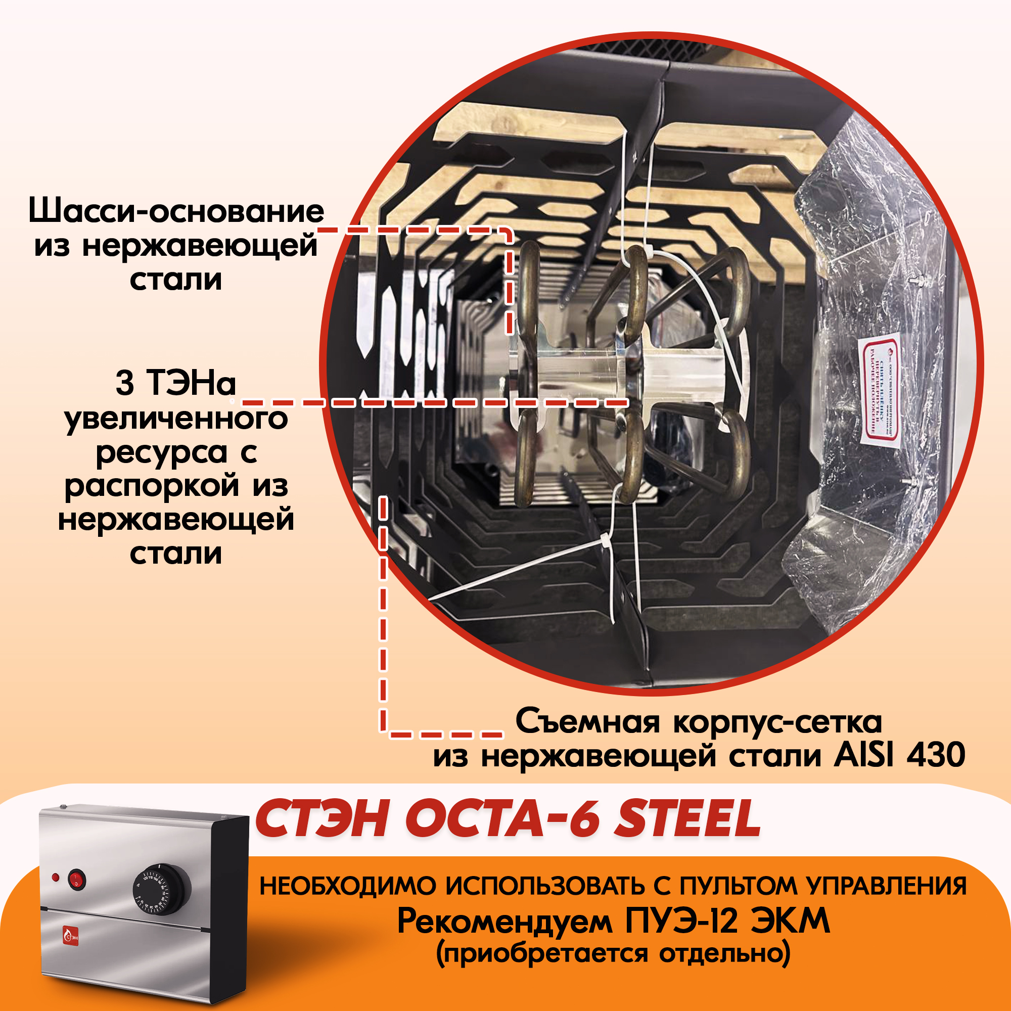 Электрическая каменка СТЭН ЭКМ 6 Octa steel в Краснодаре | Доставка по России