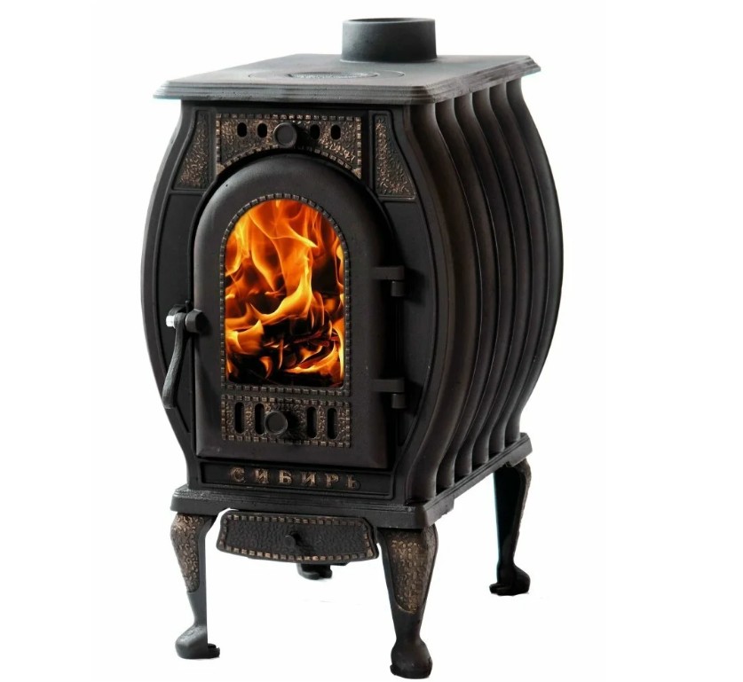 Чугунная отопительно-варочная печь «Сибирь» создана в качестве продолжения линейки чугунных печей-каминов «Сибирь», выпускаемых заводом «НМК». Печь имеет простую и надежную конструкцию, позволяющую отапливать бытовые и хозяйственные помещения объемом до 120 м3. Печь выполнена из серого чугуна марки СЧ10-СЧ20, который представляет собой оптимальный сплав, сочетающий в себе доступность с одной стороны и долговечность с другой. Конструктивные особенности печи заключаются в наличии варочной поверхности с отверстием для конфорок, что позволяет использовать данную печь для приготовления пищи, сочетая это с отоплением загородного дома. Наличие в панорамной топочной дверце термостойкого шнура обеспечивает ее герметичное запирание и исключает доступ воздуха между дверцей и передней стенкой печи. Также следует отметить, что все элементы данной печи являются чугунными (за исключением подзольного и зольного ящиков), что значительно увеличивает срок службы.