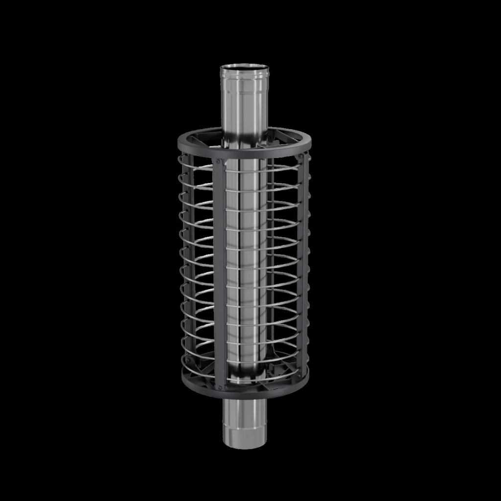Сетка-каменка защищает от излучения, уменьшая поверхность открытой трубы, снимает тепло с ее стенок и направляет его на прогрев камней.