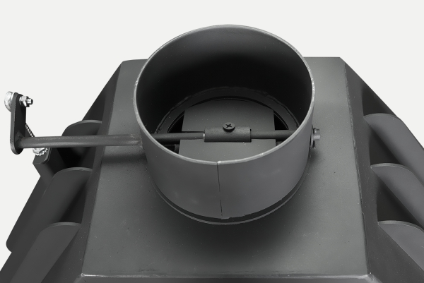•Встроенная шиберная заслонка позволяет увеличивать/уменьшать сечение дымового канала и регулирует мощность топки.