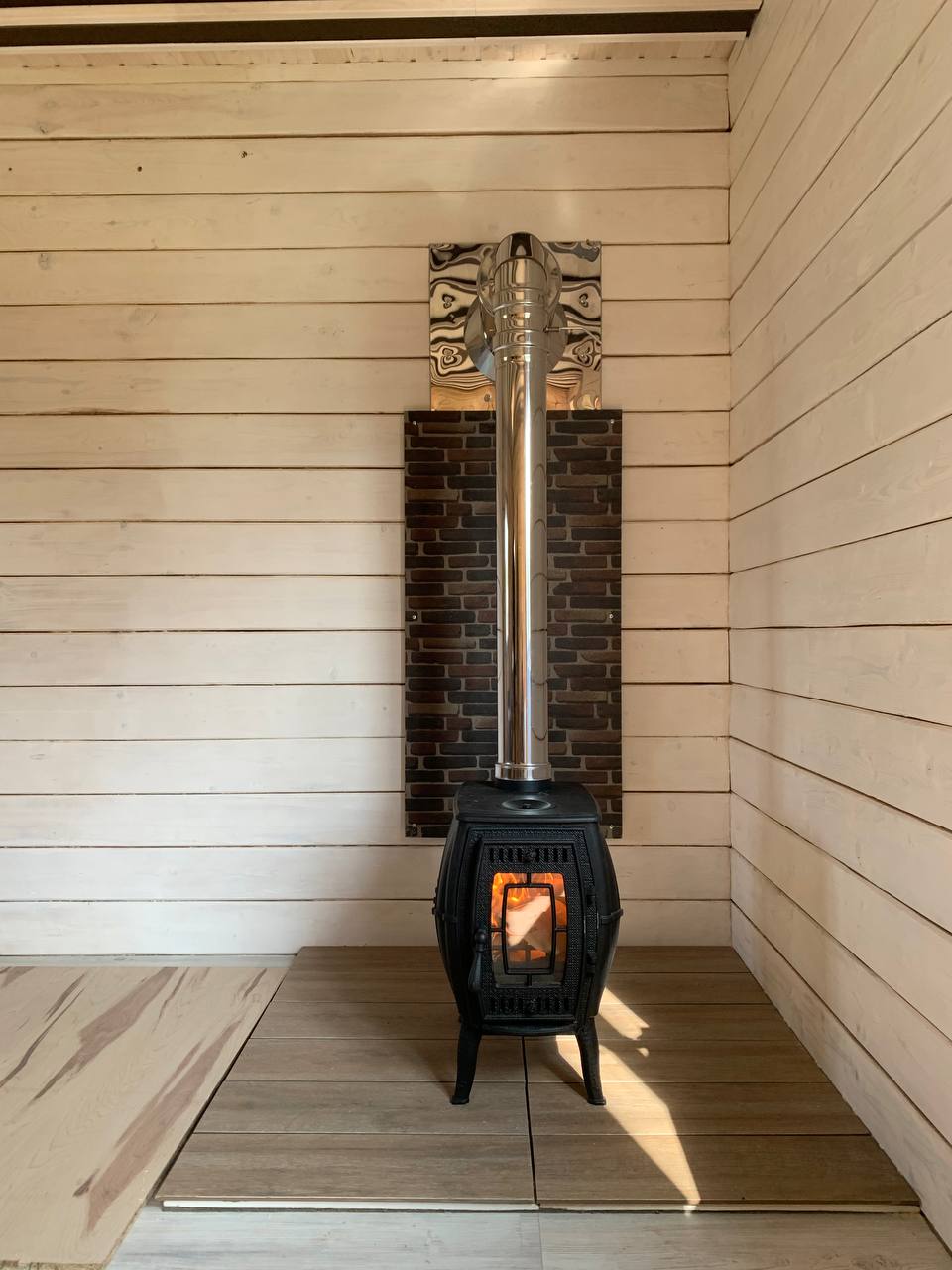 Установка печи-камина Бахтинка и монтаж дымохода.
